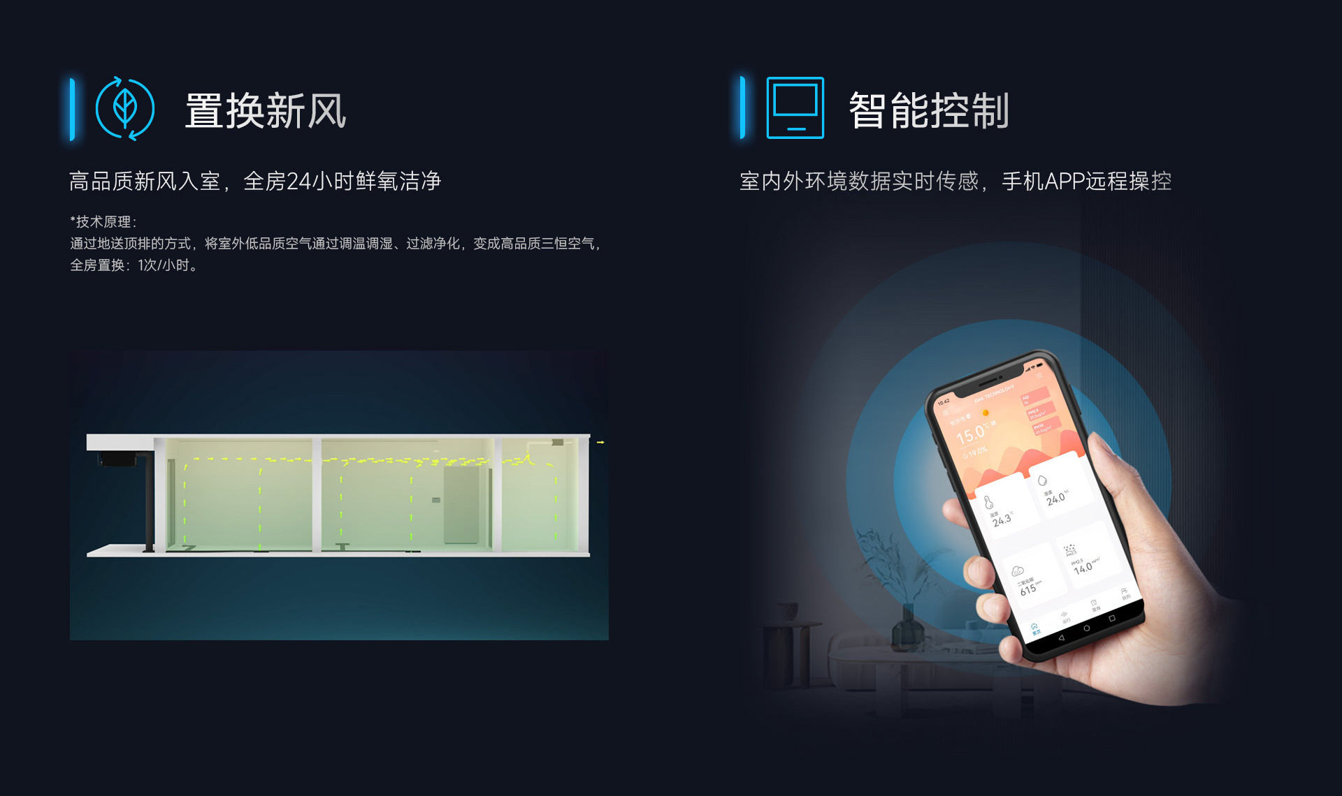 冬季寒冷、夏季炎熱、春夏潮濕、秋季干燥,甚至還伴隨著嚴重的大氣污染,室外的低品質(zhì)空氣極大地影響了人們的生活,紅橡三恒空氣系統(tǒng)將室外低品質(zhì)新風(fēng)經(jīng)四重過濾、消毒除菌和調(diào)濕、調(diào)溫處理后變成高品質(zhì)空氣送入室內(nèi),任憑窗外霧霾肆虐,室內(nèi)暢享高品質(zhì)鮮氧新風(fēng)。